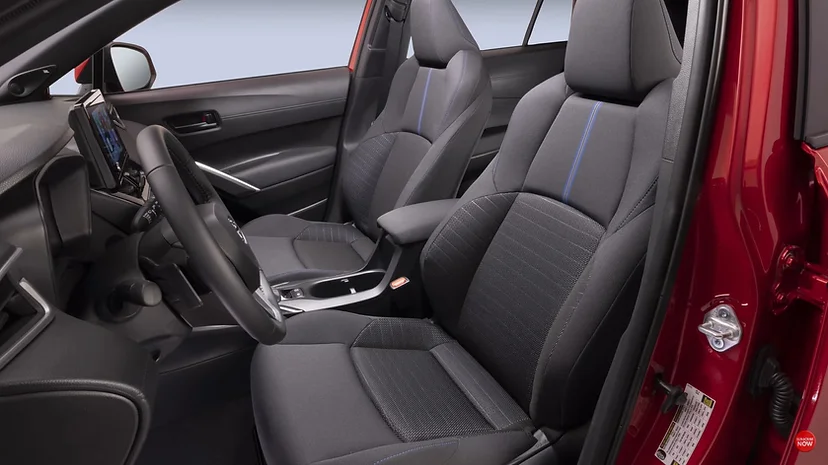 Nội thất xe Corolla Cross 2024 thiết kế không đổi so với phiên bản tiền nhiệm. Hãng xe Nhật Bản bổ sung tùy chọn màu đen hoặc đỏ cho nội thất và trang trí đường chỉ khâu tương phản. Sau vô-lăng là màn hình hiển thị đa thông tin 12,3 inch. Trong khi màn hình cảm ứng giải trí loại 9 inch trên bản máy xăng và 10,1 inch bản hybrid.